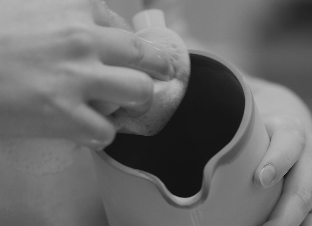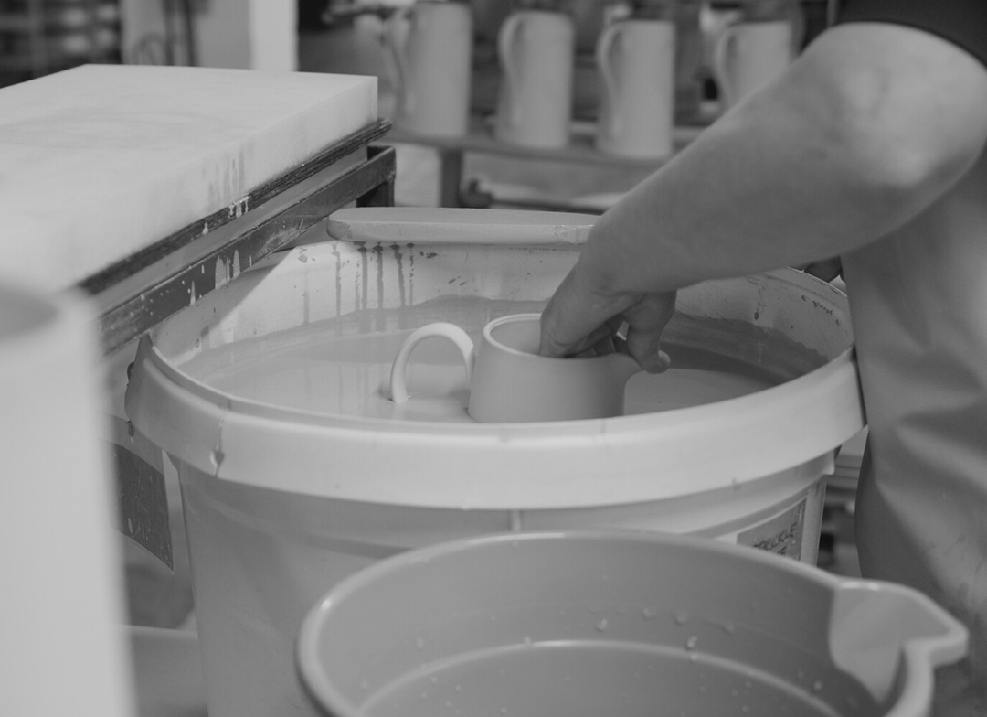 A damp sponge is used to wipe over every piece, make it clean and smooth. Each piece is quality checked and any that don't meet the required quality are recycled back to slip.