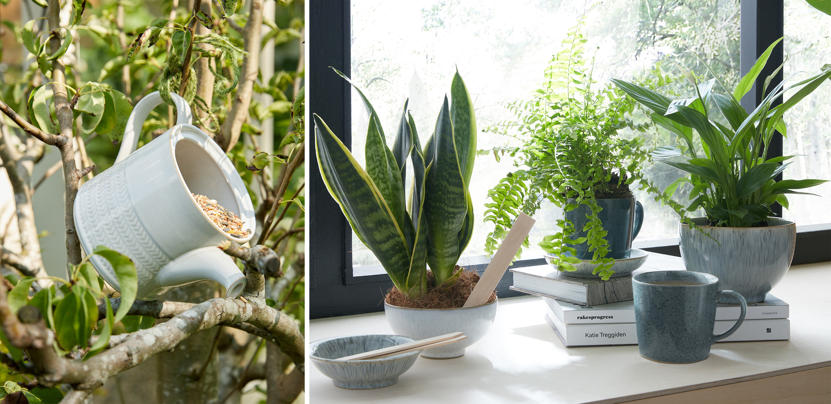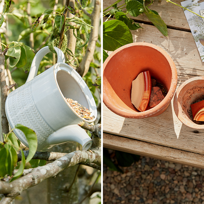 As with repurposing ceramics in the home, your Denby can also be put to good use in the garden: mugs and bowls make great plant pots, and large jugs can be used instead of a watering can on balconies and patios. Or get really creative with a teapot and create a waterfeature or birdfeeder! If your pieces are too damaged to repurpose in this way, why not break them up to help with drainage at the bottom of planters to help keep your patio plants in great condition.
