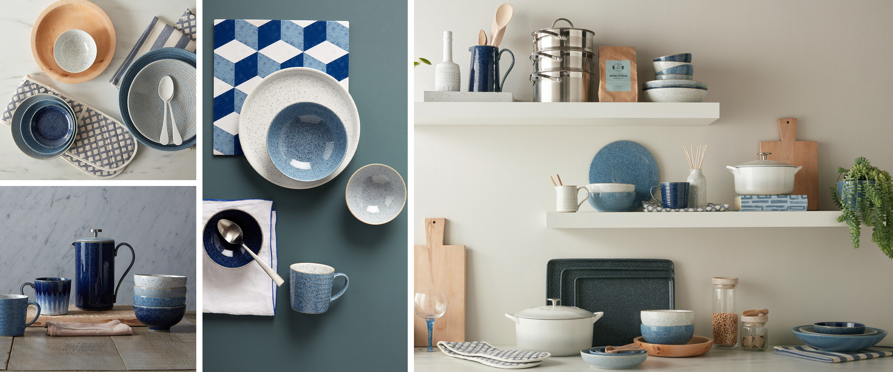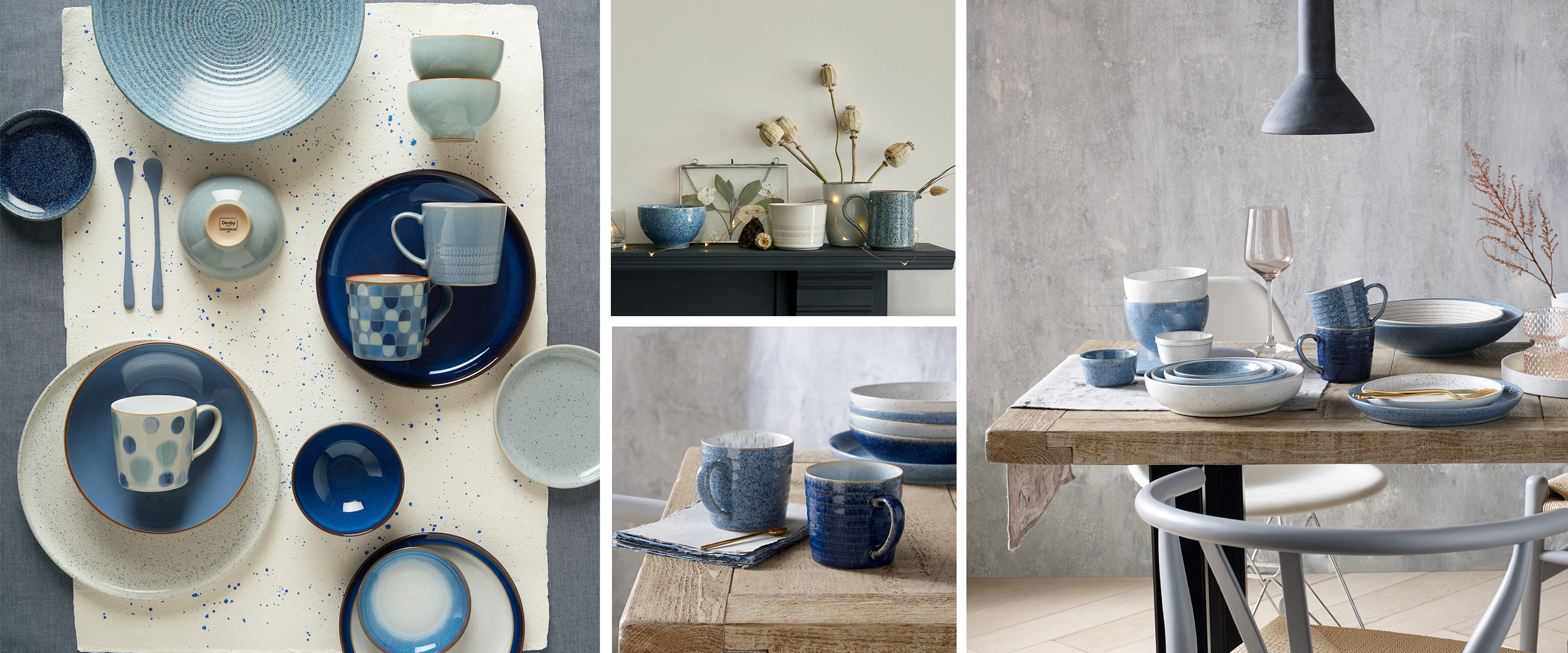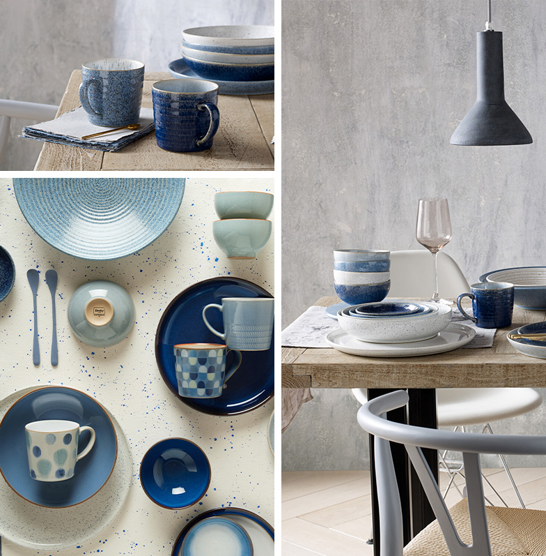 Denby Studio Blue is inspired by the trend for a natural aesthetic in the home using honest materials and ceramic crafting techniques. This quality stoneware collection, which is made in Derbyshire England, features a range of bowls, plates and platters designed with laid-back entertaining in mind. The range combines four tonal glazes inspired by the colours and textures found in stone and minerals, combined to create a tactile collection which captures the essence of Denby's hand-crafting skills and textural glazes perfected over 200 years.