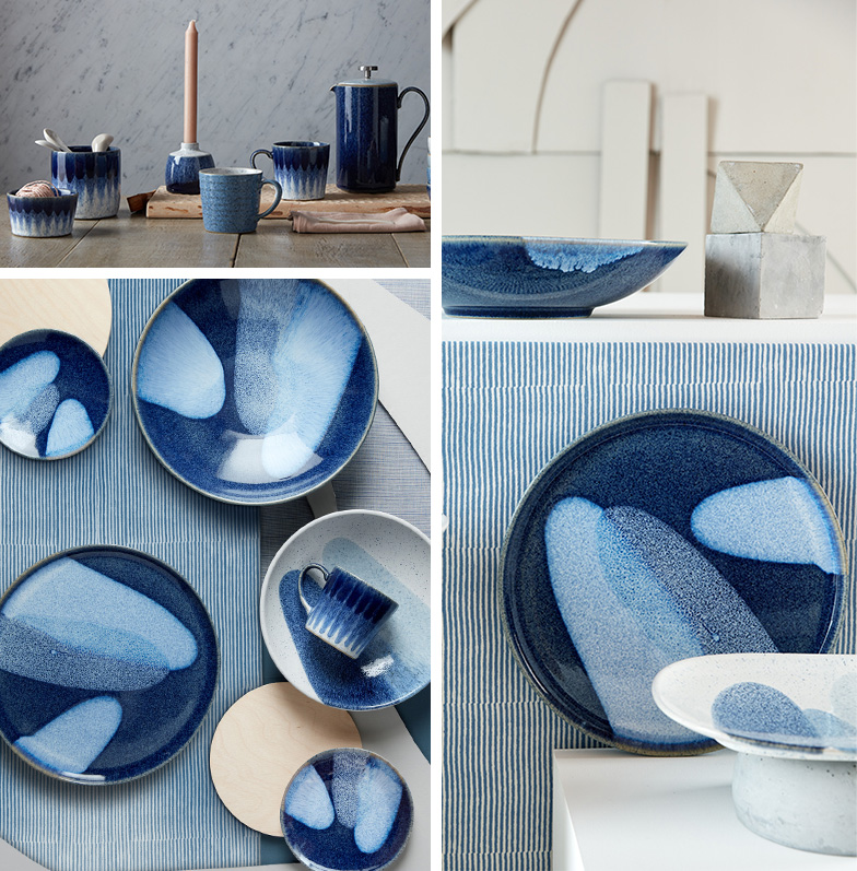 Our Design Team are constantly experimenting with new decoration and glaze techniques whilst looking to the future and the past for inspiration. Designed to have the look and feel of studio pottery the Studio Blue Accent has evolved over time to be something organic and fluid that is uniquely different across every piece.