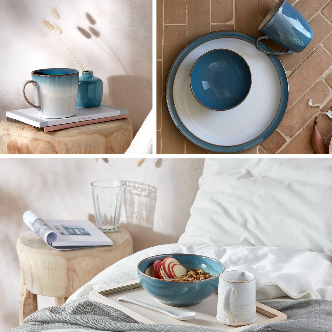 Inspired by the shimmering turquoise waters of the Mediterranean, the Azure collection brings an instant sense of freshness and vibrancy to the table. Its cool, uplifting blue tones add a splash of colour while creating an effortlessly relaxed atmosphere. When paired with the softer hues of Azure Haze, the collection comes together in perfect harmony, evoking sun-soaked coastlines and leisurely dining. The result is a calming, refreshing tablescape that captures the essence of holiday living, bringing a touch of escape to everyday moments.