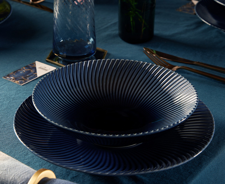 With a deep blue hue and tactile surface, the Blue Arc Porcelain collection is perfect for adding a pop of colour and texture to your table setting and décor. Style with Classic White or Arc White for a sleek modern look, or layer with the Modern Deco range to create a porcelain edit full of bold geometric patterns and rich blue tones. The Arc Blue range also looks stunning alongside our textured handmade glassware.