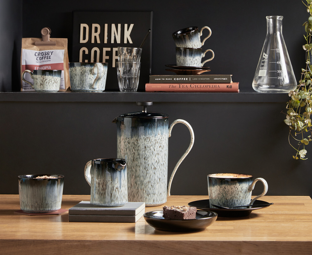 Whatever your favourite type of tea or coffee, you can serve it in style with stoneware mugs, coffee cups and espresso cups from our Brew collection. We also offer milk jugs and sugar bowls in matching designs.