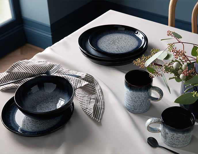 Our range offers everything you need for a stunning and co-ordinated table setting. If you're looking to start your collection, Denby Halo dinner sets include dinner plates, side plates and bowls, and some are available with matching mugs or glasses. You can also build or expand your set with individual items such as Halo pasta bowls, serving dishes and teapots. Halo Speckle is a lighter speckle design that can be effortlessly mixed and match with Denby Halo.