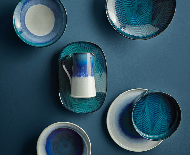 Denby Statements is a limited-edition collection designed for modern homes. Featuring striking ombre green, ombre blue and fern green glaze effects, these ceramics look as beautiful in use as they do on display. All pieces are handcrafted in England.