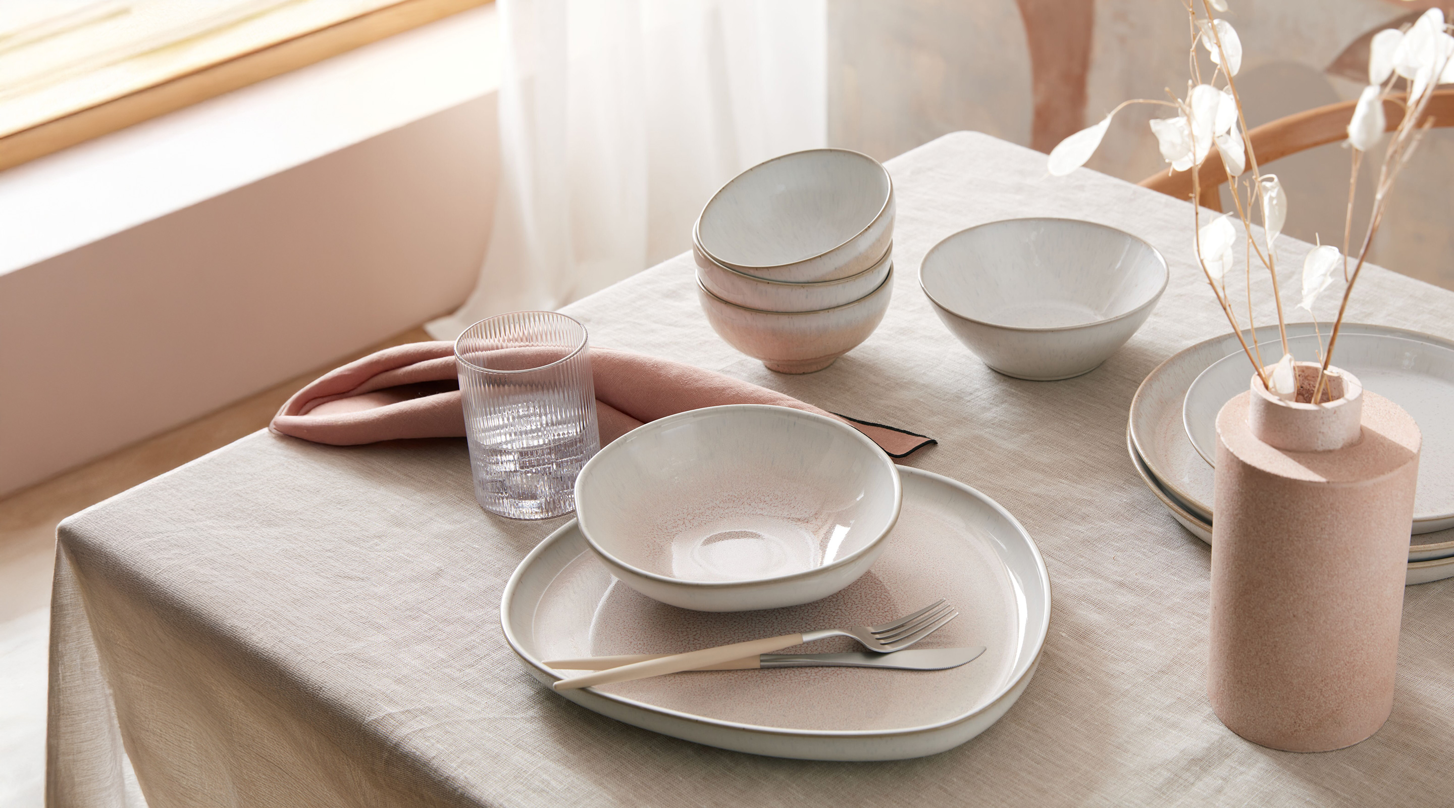 Introducing Kiln Coral, a new collection of versatile pieces in a gentle palette of chalk white and earthy pastel pinks.