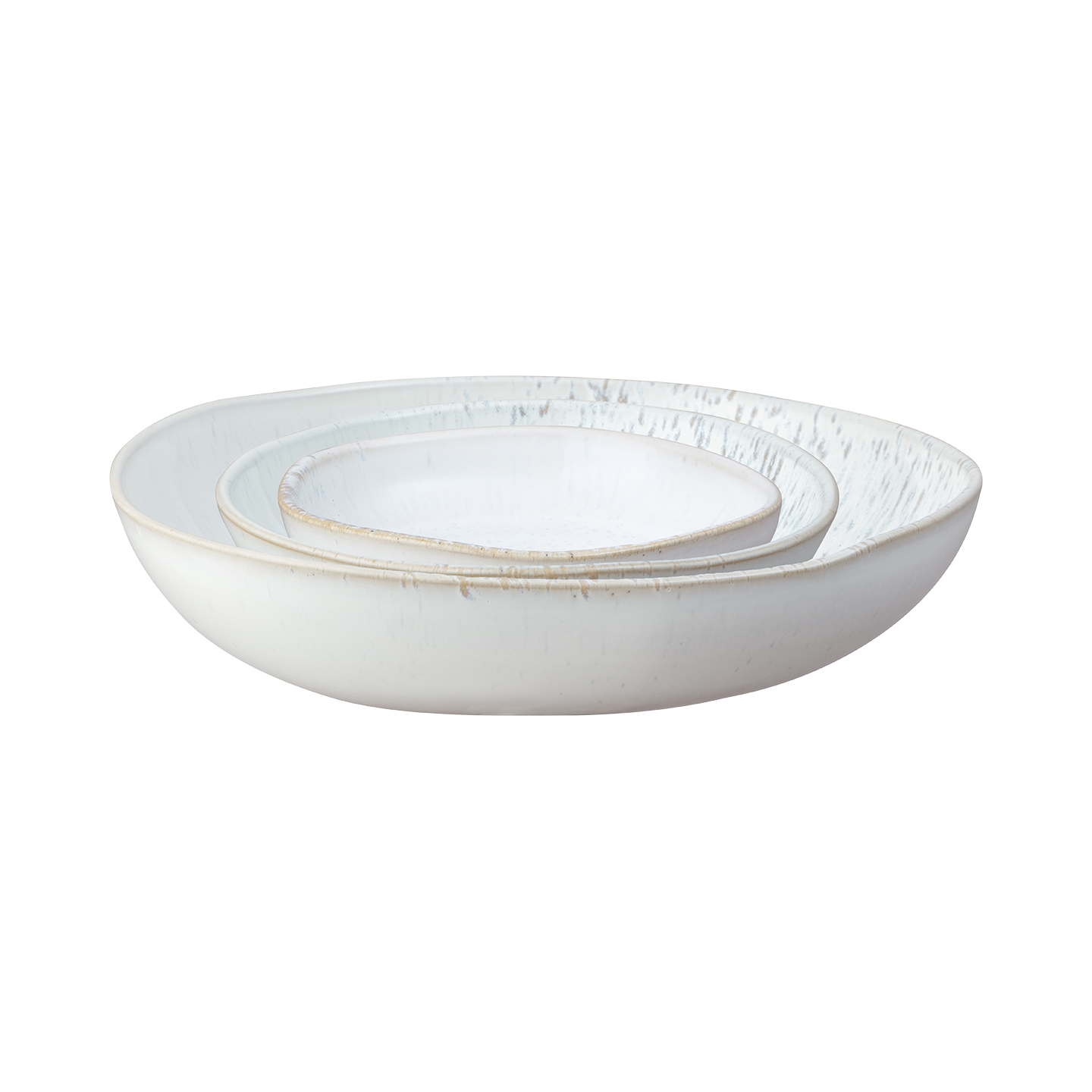 This 3-piece serving set features softly curved, organically shaped pieces with a layered freckled glaze. Includes 3 serving bowls in varying shapes�perfect for sharing meals in style or to be presented nested together. Makes a great gift.