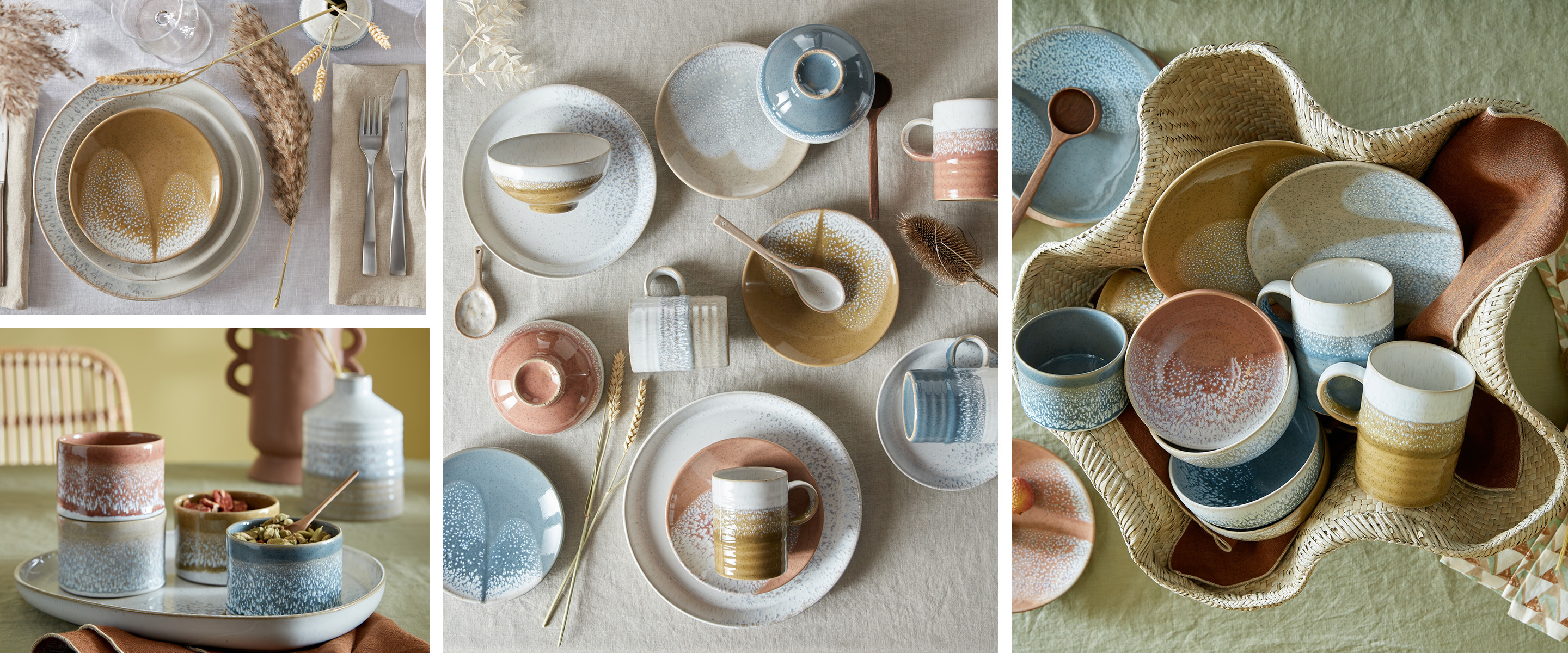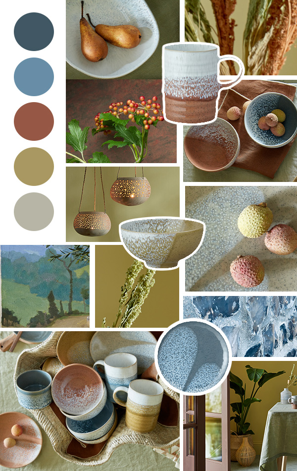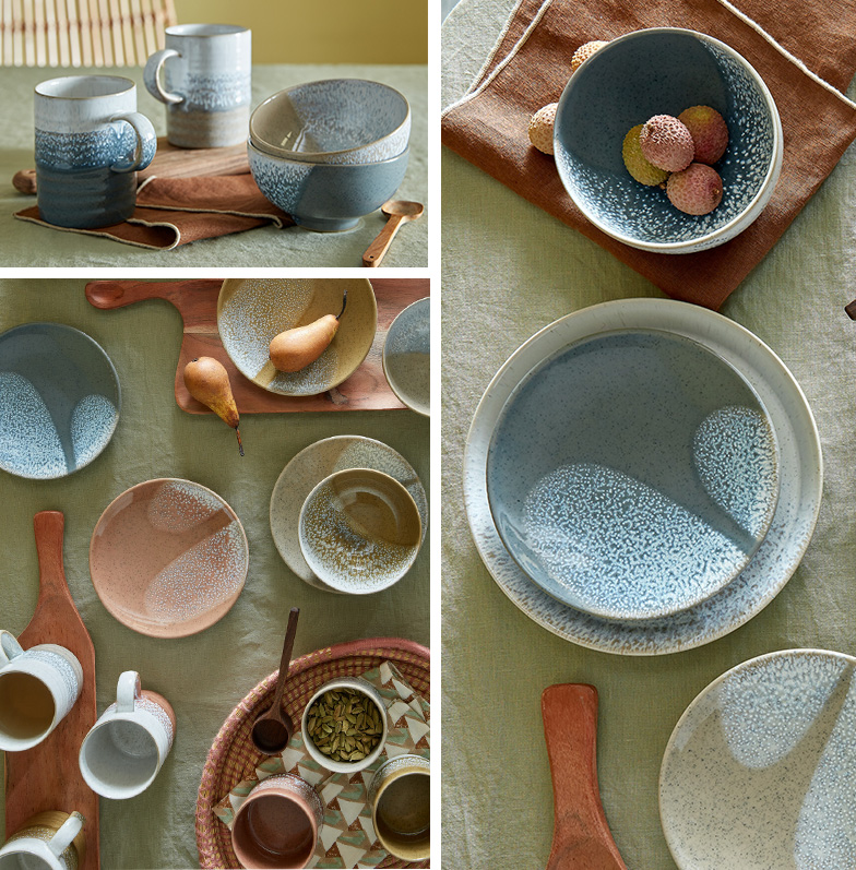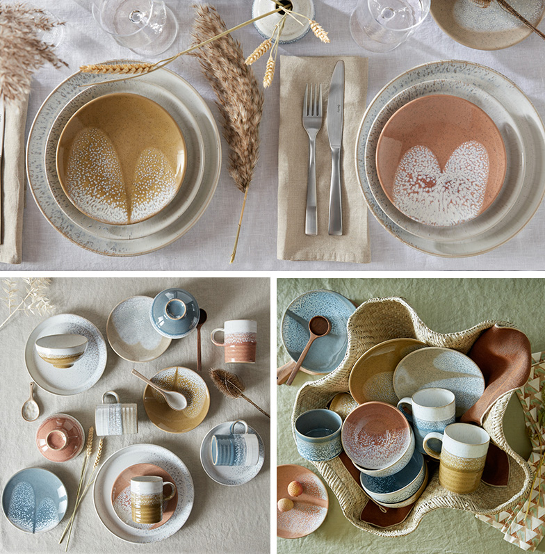 'Three new rich, earthy shades marry perfectly together and with our existing taupe shade of Kiln by Denby. The comforting and humble hues paired with subtle flecks of hand-sprayed glaze make a contemporary yet timeless statement.