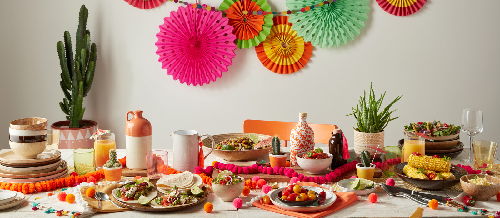 Dress up your table with a festive centerpiece such as a mixture of potted cacti and succulents. Alternatively, decorate with fresh flowers in a Large Vase. Classic Mexican flowers include:
