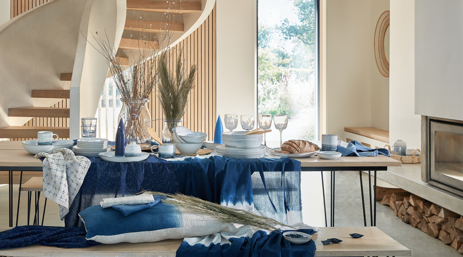 Kiln Blue combines unique glazing techniques to echo the movement and multi facetted tones of waves, featuring a soft white glaze and gentle inky blue stipples. A modern collection of pieces designed to sit comfortably together in an on trend inky blue colourway or alone as capsule items in any space.