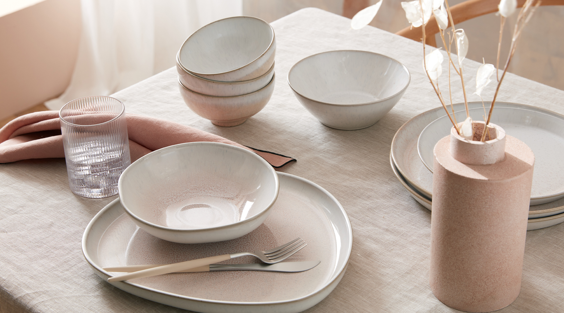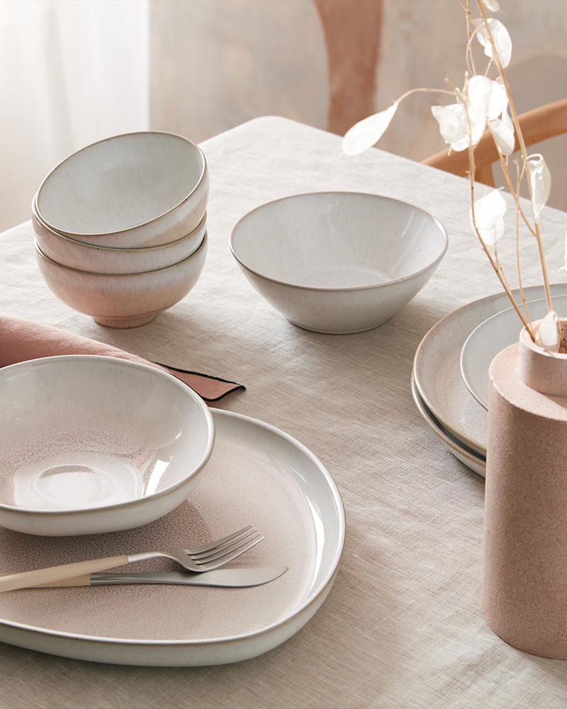 Pared back and contemporary with a timeless ease, the original Kiln collection draws on the colours of nature, layering chalk white with gentle undertones of warm oatmeal and cool grey. The layered organic forms and handcrafted textures add warmth and soulfulness to any gathering.