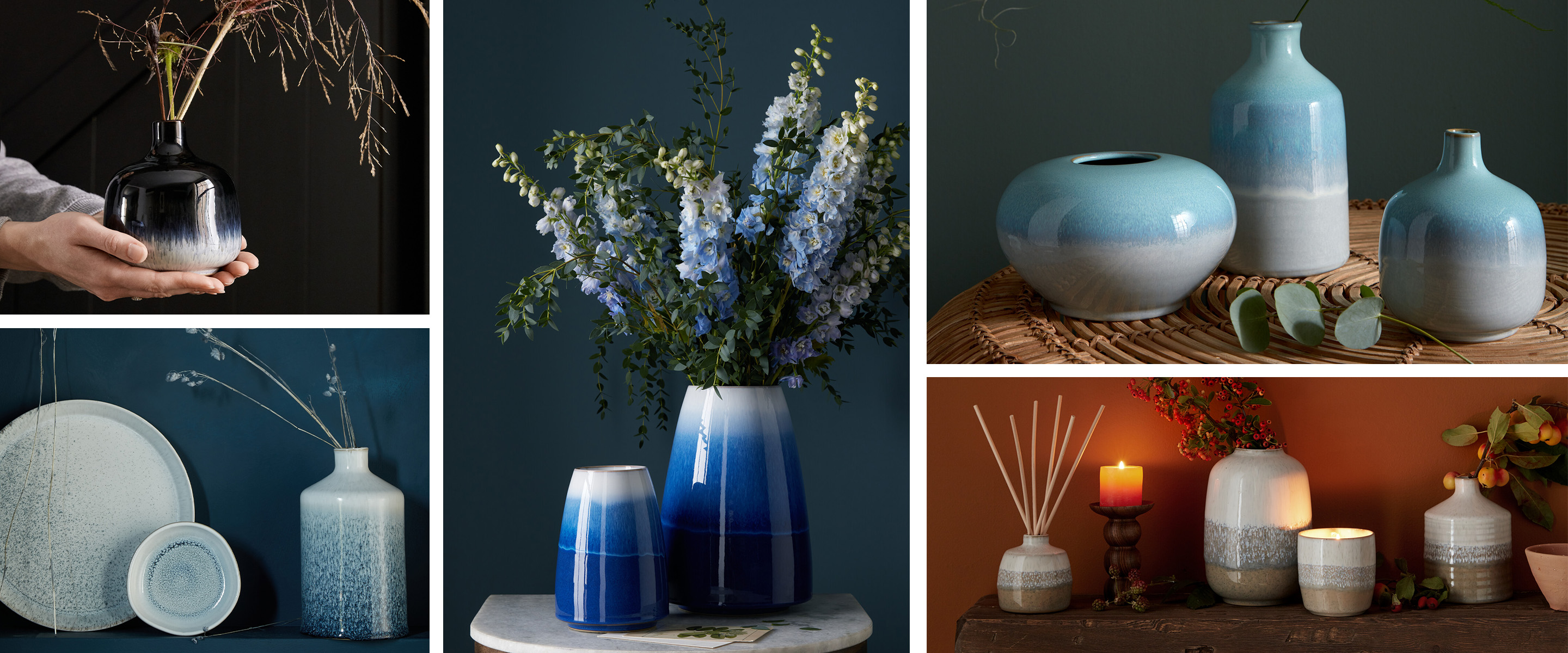 Consciously crafted in our Derbyshire pottery for those looking for sustainable interiors and homewares choices. This new Home Décor Collection by Denby showcases our expertise in achieving impactive glaze effects perfected for over 200 years on locally sourced Derbyshire clay.
