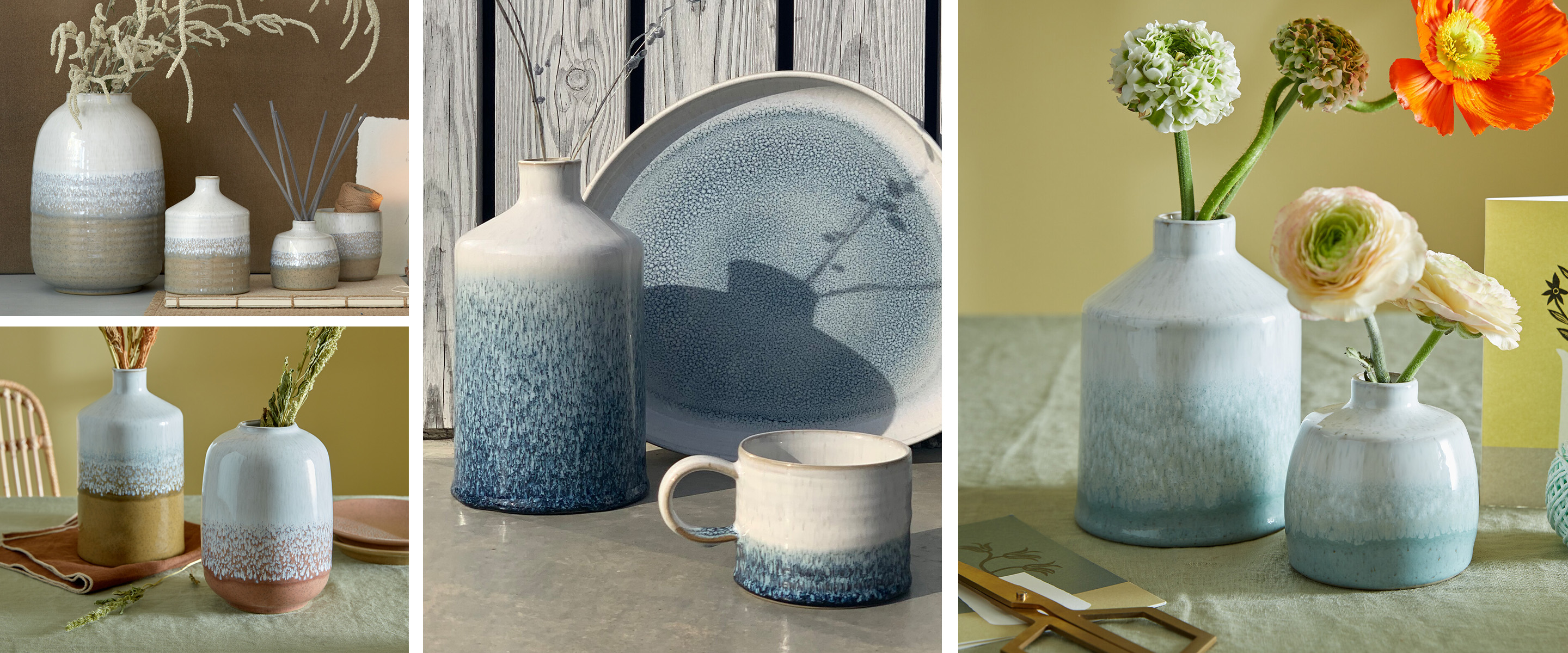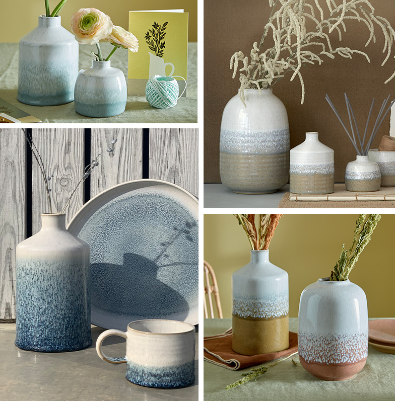 A collection of home décor made in ceramics that uses unique reactive glaze effects to create stunning patterns on simple forms designed with style and purpose and hand thrown in our Derbyshire pottery.